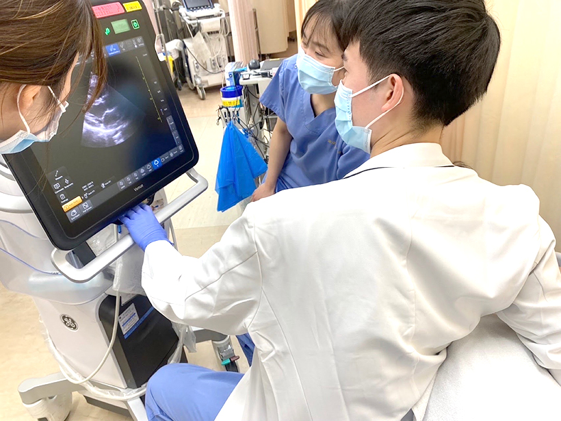 当院ERではジュニアレジデントとシニアレジデントがチームを組み、診療中に相談やフィードバックを受けながら学べる「屋根瓦式」の教育体制を採用しています。また、救急専門医が上級医として常に控えており、迷う症例や日々の振り返りも丁寧に行われています。
