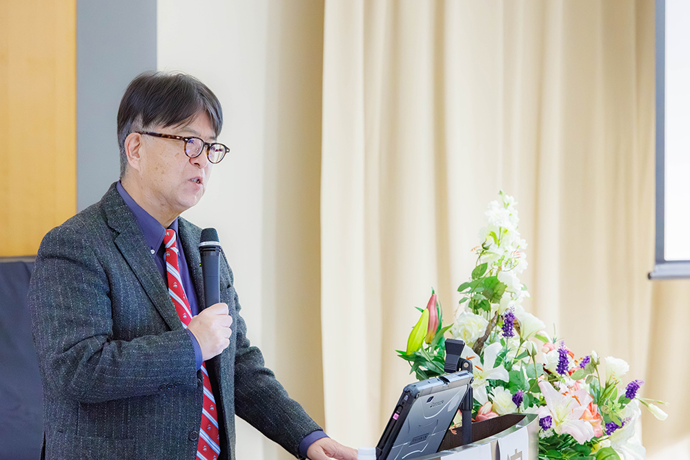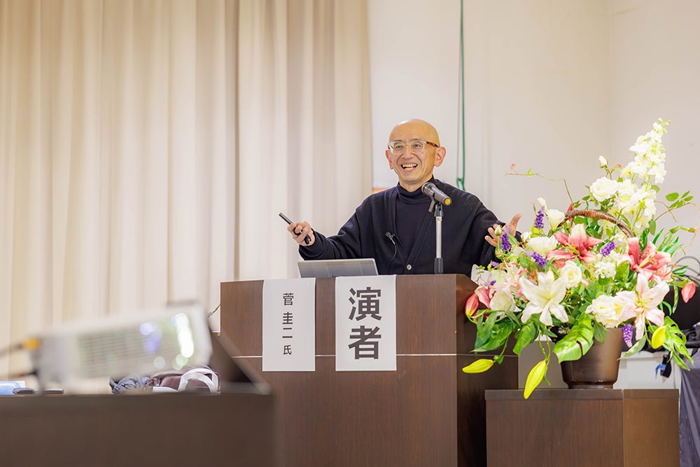 基調講演では、人財育成センター設立時から5年にわたりアドバイザーを務めていただいている文京学院大学の松下博宣教授と、若くして大病を経験しがんを乗り越えられた菅圭二さんの2名にご講演をいただきました。