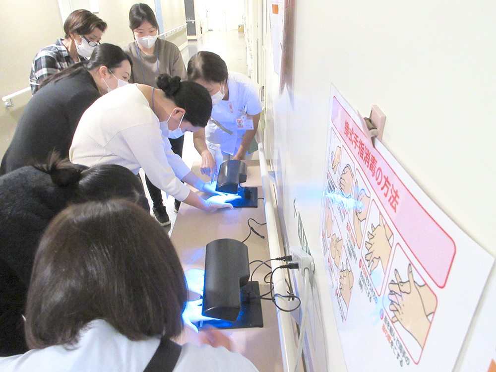 研修生より、『標準予防策の重要性がわかり、日々の感染対策の手技について振り返ることができた、今から役立てる!』『職種が違っても、基本的な手指衛生が重要であることを理解できた』ととても好評でした。